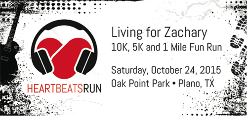 Living for Zachary is hosting our 7th Annual HeartBeats Run this year on October 24th at Oak Point Park in Plano! Events include a 10K, 5K, and 1-Mile Fun Run/Walk. Our theme this year is Rock n Roll and prizes will be awarded to the best dressed participant! Register by September 15th to receive a FREE dri-fit shirt!