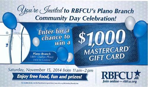 You're Invited to RBFCU's Plano Branch Community Day Celebration! Enjoy free food, fun, and prizes!